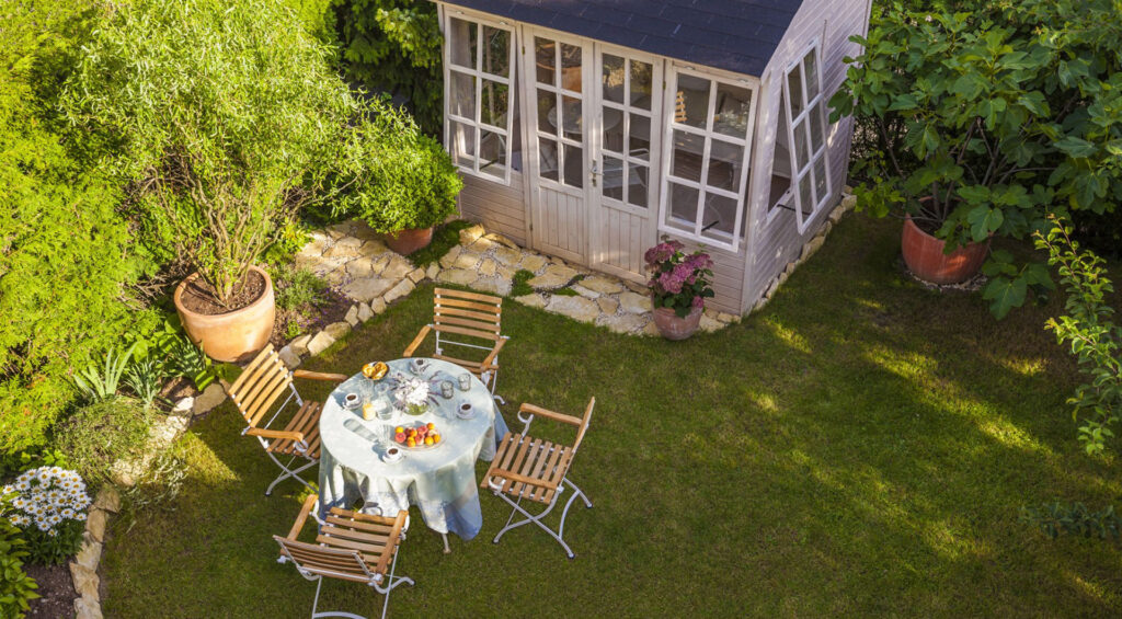 A barn or a shed is a utilitarian structure, but that doesn’t mean it has to be an eyesore. Spruce it up by painting it a bold color, attaching some shutters, adding some flower boxes, installing a stone path or even stringing up some lights to zhuzh up that forgotten space in the backyard.